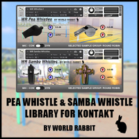 WR WHISTLESはレジャーやマーチングバンドなどで使われるホイッスル「WR Pea Whistles」とサンバホイッスル「WR Samba Whistles」の金属製・プラスチック製計4個を収録した、 KONTAKT専用のホイッスルライブ ラリです。